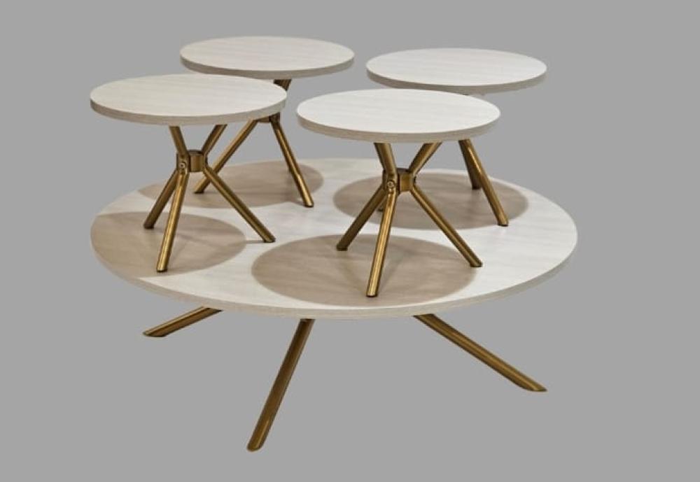 طقم طاولات ارضي ابيض ذهبي دائري