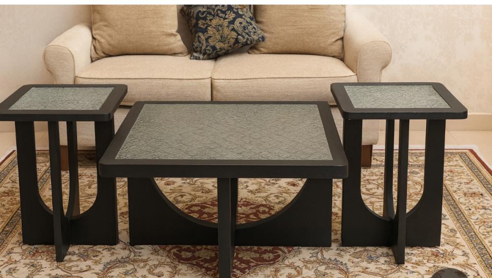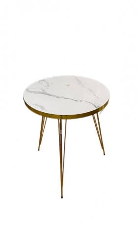 طاولة شاي ابيض ذهبي كبير الارتفاع 60 قطر الدائره 50